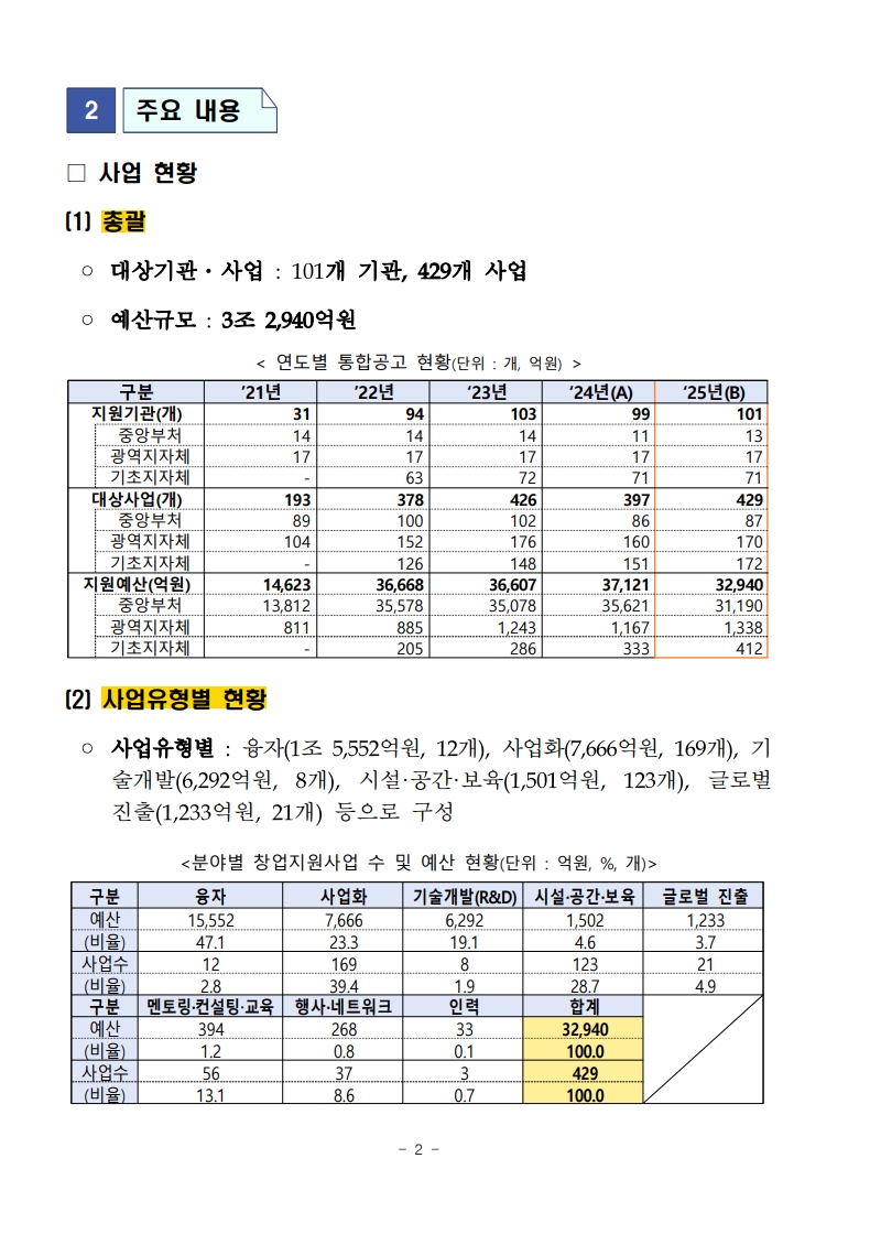 2025년 중앙부처 및 지자체 창업지원사업 통합 공고가 발표되었습니다. 이는 창업을 꿈꾸는 예비 창업자와 기존 사업자에게 큰 기회를 제공하는 중요한 프로그램입니다. 정부는 혁신적인 아이디어와 열정을 가진 창업자들이 성공적으로 사업을 운영할 수 있도록 다양한 지원을 아끼지 않고 있습니다. 이번 통합 공고를 통해 제공되는 지원 내용과 신청 방법을 자세히 알아보겠습니다. 창업 생태계의 활성화를 위한 이번 사업이 여러분의 창업 여정에 어떤 도움이 될 수 있을지 기대해 봅니다.