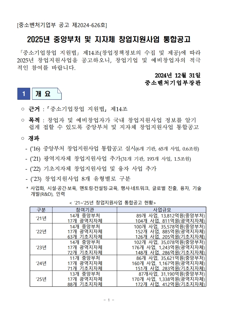 중앙 및_지자체_창업지원사업_통합공고문(제2024-626호,_2024.12.31.).hwpx